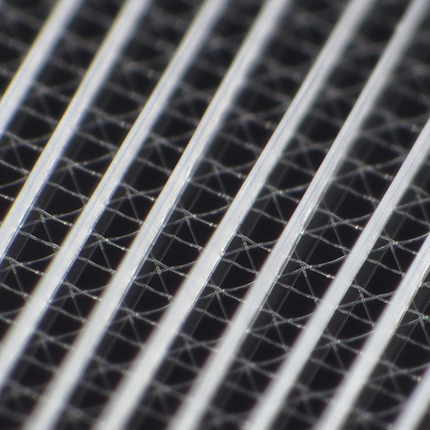 Rectilinear grid with uniform pores (e.g. ~150 µm).