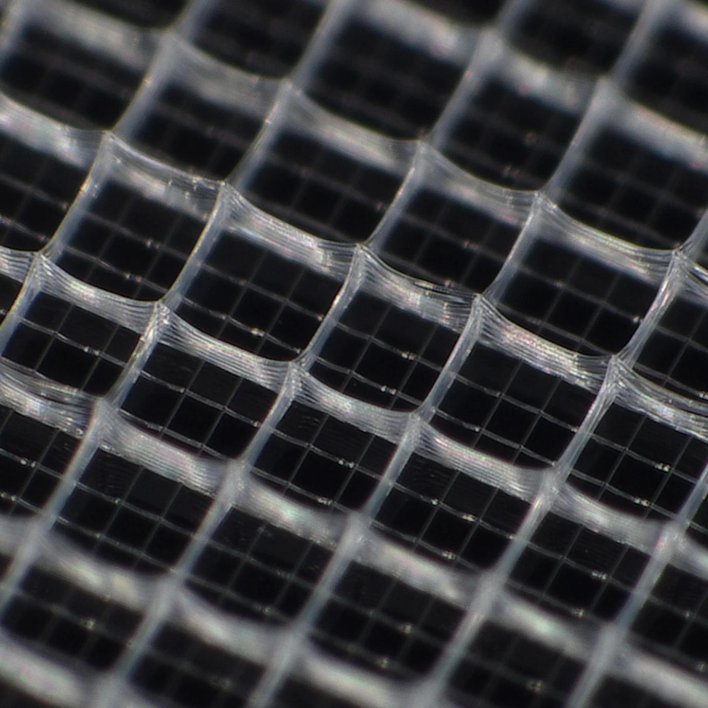 Rectilinear grid with uniform pores (e.g. ~150 µm).